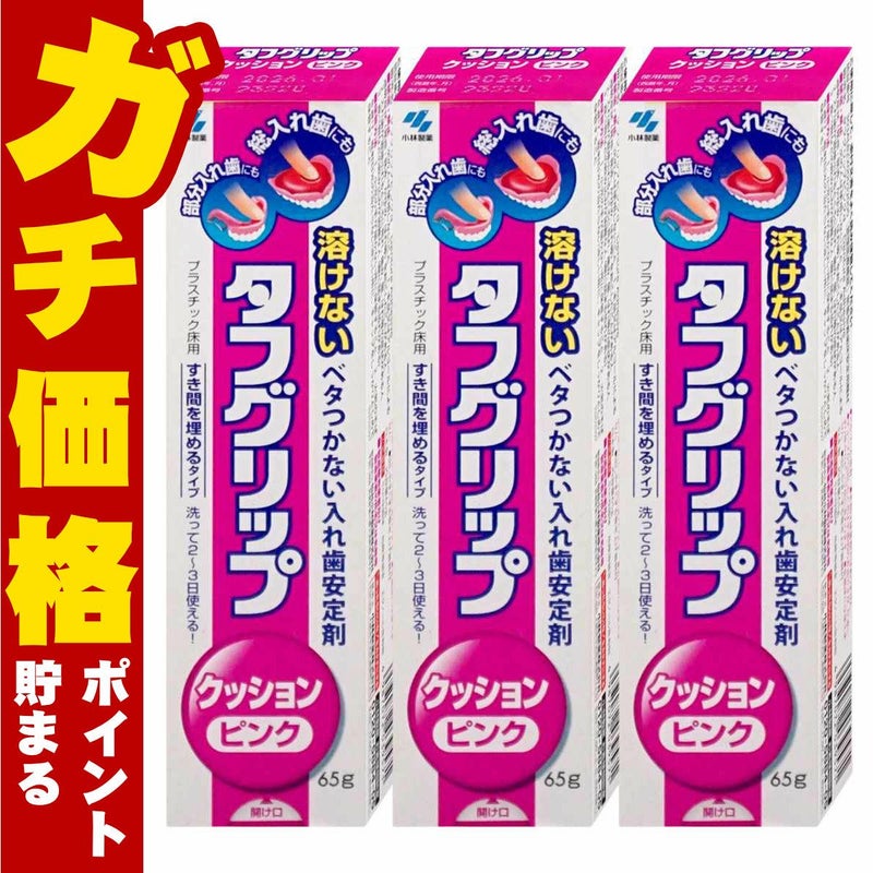 【セット】タフグリップ クッション ピンクd 入れ歯安定剤 65g×3個【小林製薬】【管理医療機器】【宅配便送料無料】(6054075-set2)
