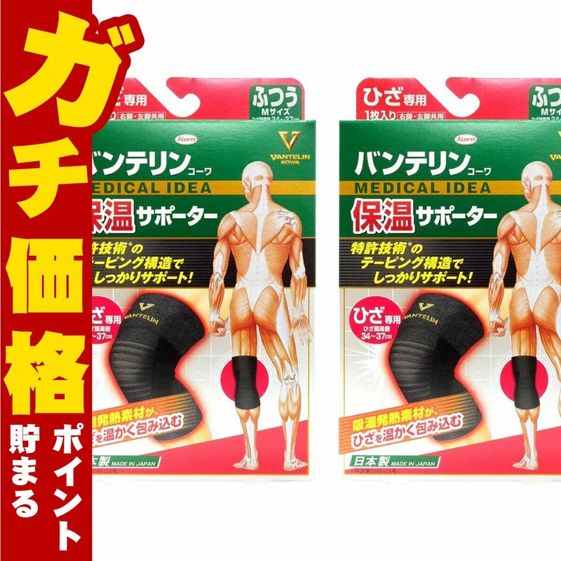 【2個セット】コーワ バンテリン保温サポーターひざ用 ブラックM(ふつう)※ひざ頭周囲34~37cm【膝専用/左右共用1枚入り】【バンテリン膝サポーター/日本製/ Kowa / 興和】【メール便対応商品】【SBT】(6022690-set2)