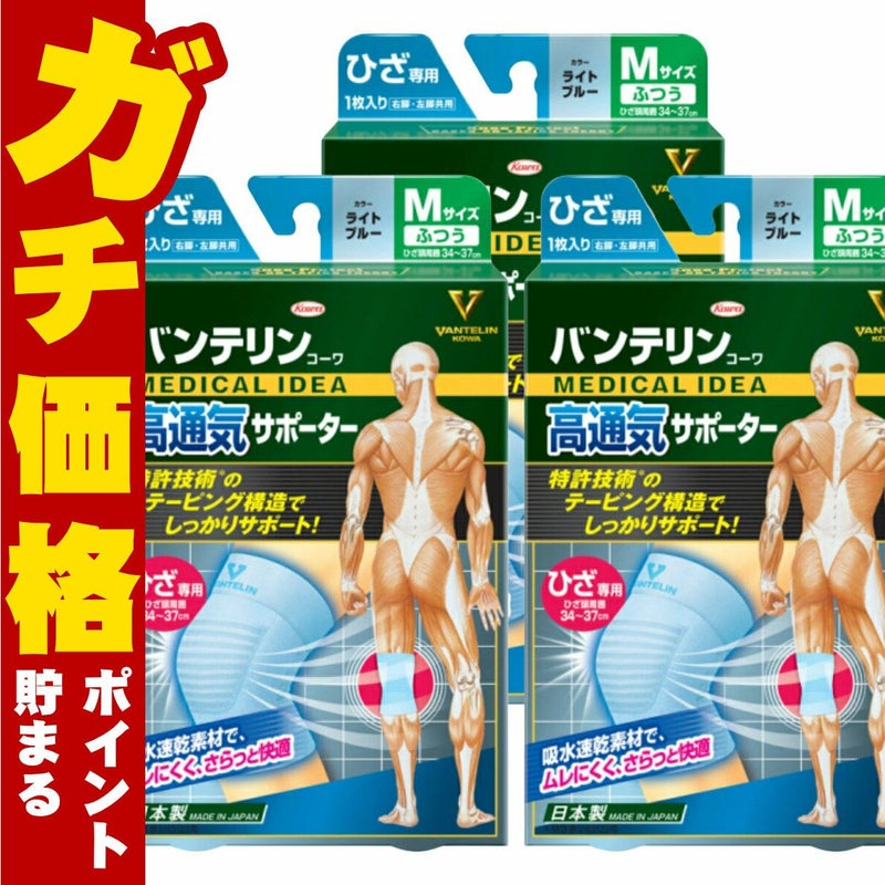 【3個セット】コーワ バンテリンサポーター高通気ひざ用ふつうライトブルー※ひざ頭周囲 34~37cm【膝サポーター/膝専用/左右共用1枚入り】【日本製/ Kowa / 興和】【宅配便送料無料】(6029223-set3)