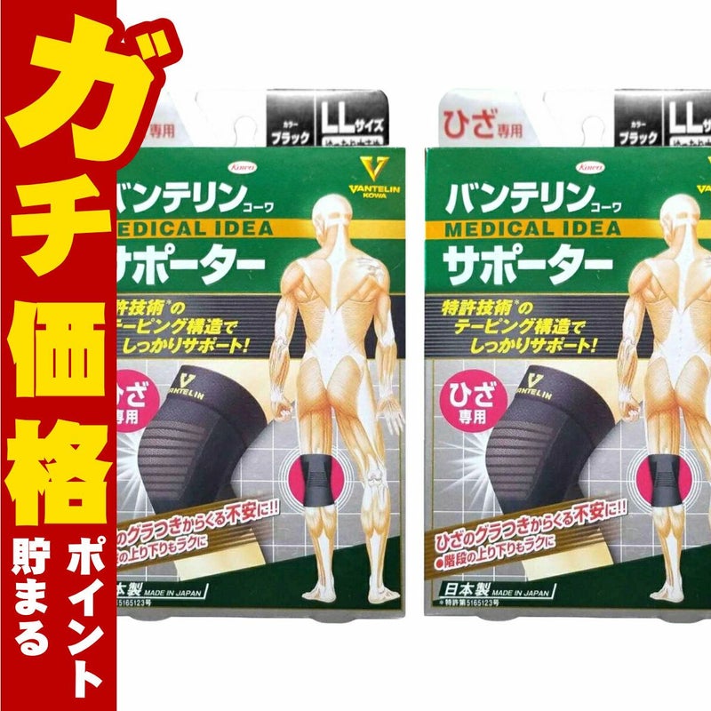 【2個セット】コーワ バンテリンサポーターひざ用 ブラックLL ゆったり大きめ ※ひざ頭周囲40-43cm【膝専用/左右共用1枚入り】【日本製/ Kowa / 興和】【GTT】【メール便対応商品】【SBT】(6042416-set2)