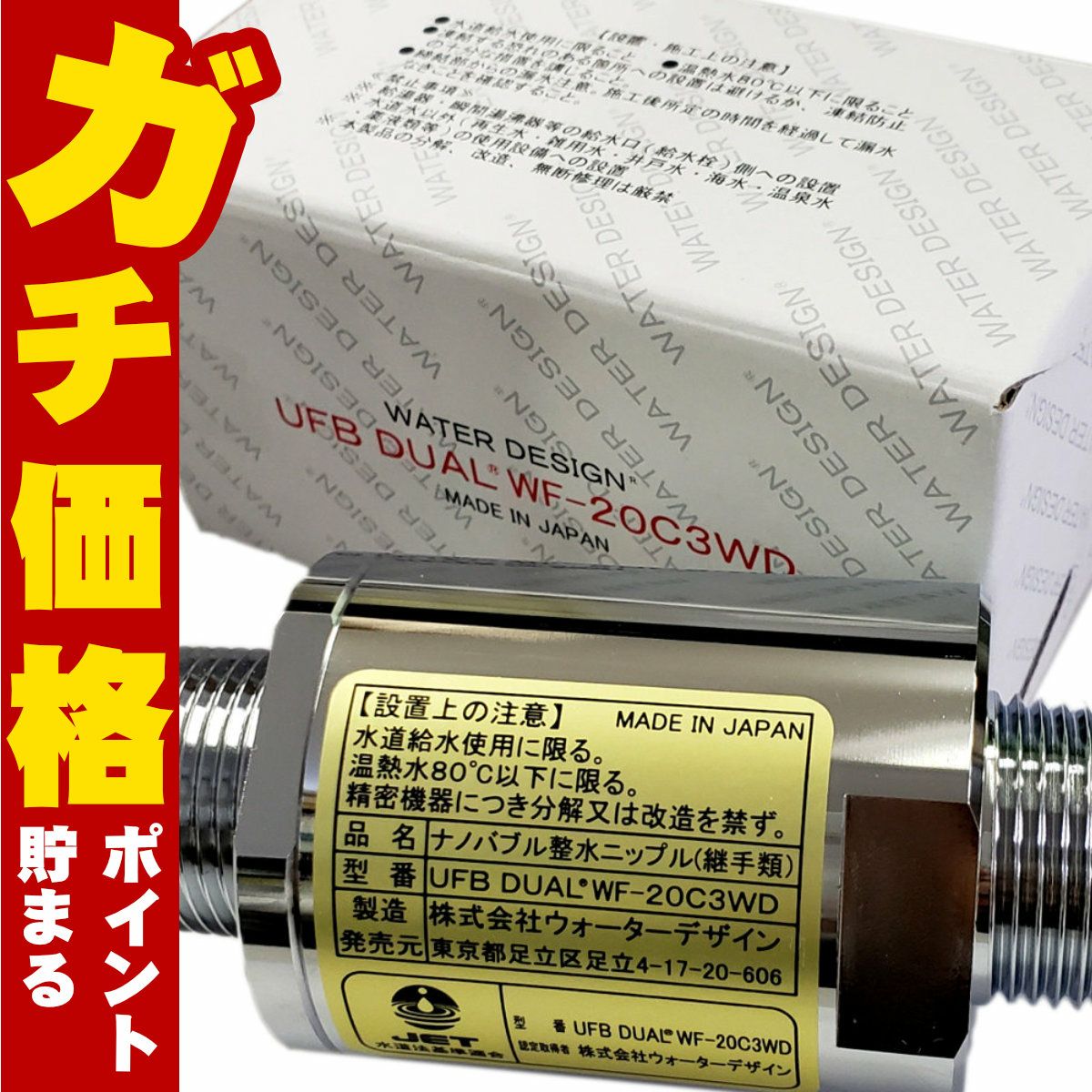 【直送】ウォーターデザイン社製ウルトラファインバブル生成ノズル 正規品「UFB DUAL 20A」 ウルトラファインバブル水 施設設置 自宅全部の水をウルトラファインバブルに変える ウルトラファインバブル【代引き不可】※他商品との同梱不可【宅配便送料無料】 (6058328)