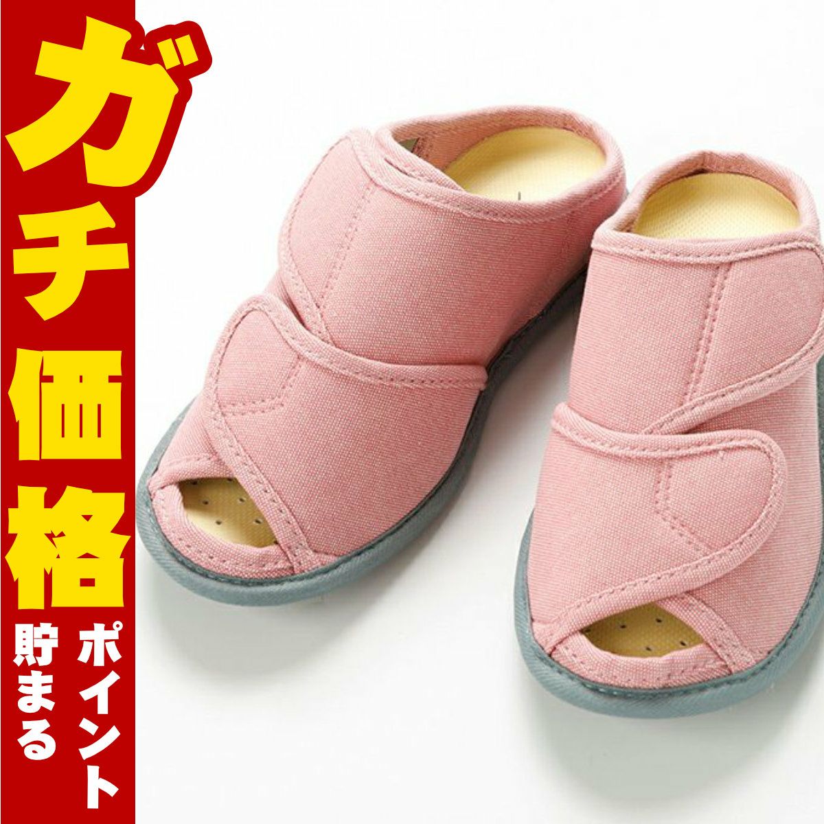 徳武産業 あゆみ ダブルマジック3 ピンクL(23.0cm~23.5cm)【足囲3E 両足】【施設用ケアシューズ 介護シューズ シニアシューズ スリッパ 室内履き ルームシューズ】【宅配便送料無料】(6064328)