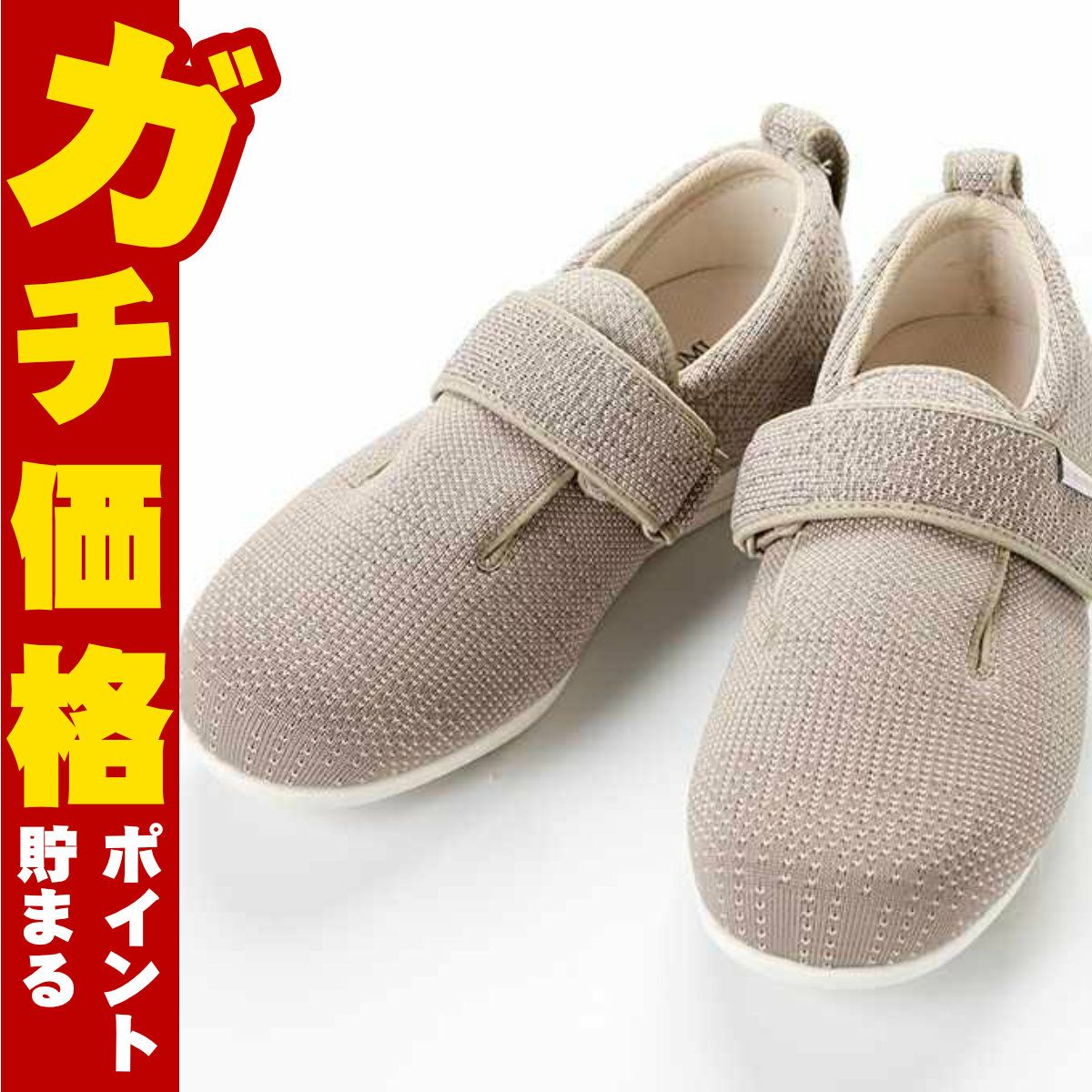 徳武産業 あゆみ ダブルマジック3 ニット ベージュLL(24.0cm~24.5cm)【足囲3E 両足】【施設用ケアシューズ 介護シューズ シニアシューズ スリッパ 室内履き ルームシューズ】【宅配便送料無料】(6064338)