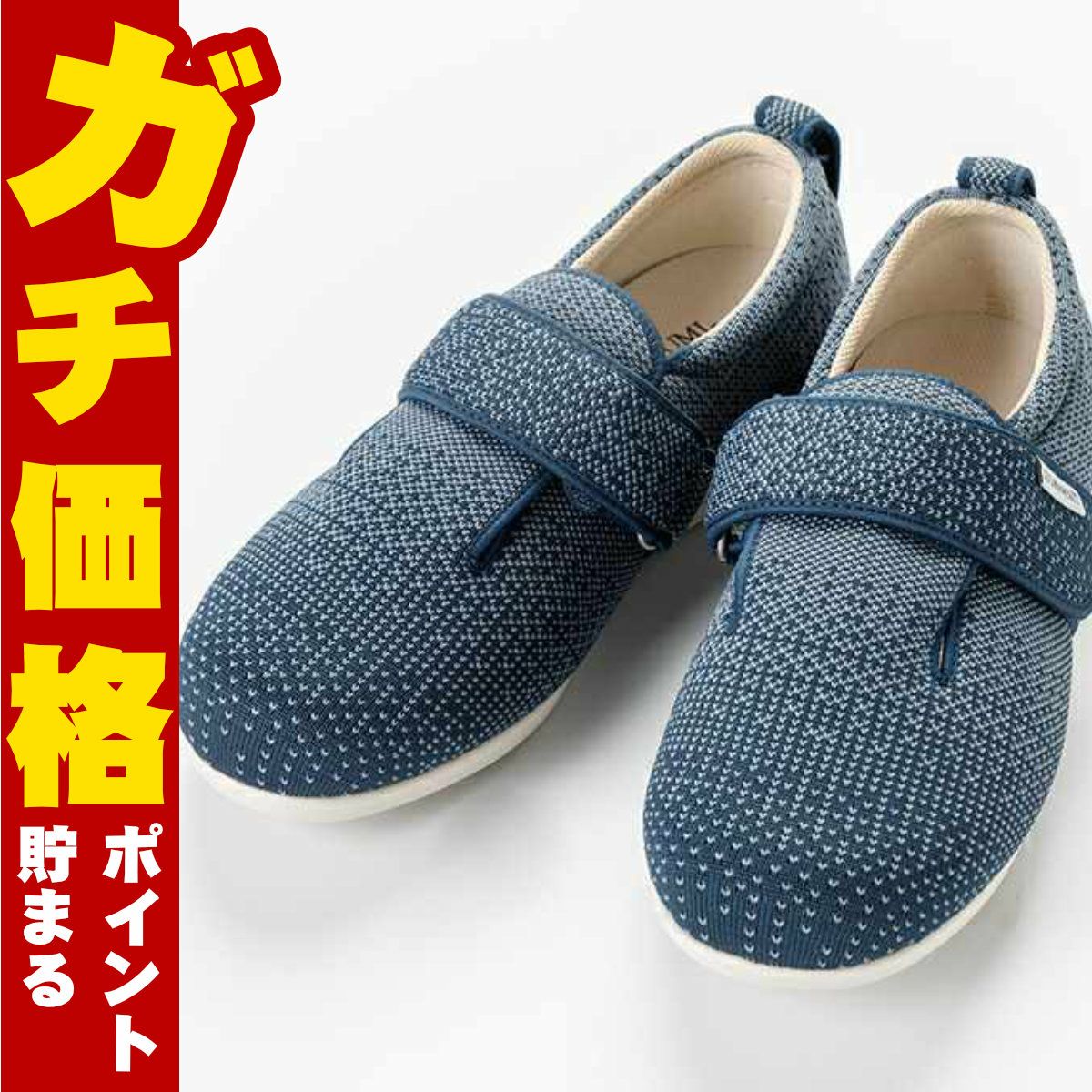 徳武産業 あゆみ ダブルマジック3 ニット 紺M(22.0cm~22.5cm)【足囲3E 両足】【施設用ケアシューズ 介護シューズ シニアシューズ スリッパ 室内履き ルームシューズ】【宅配便送料無料】(6064339)