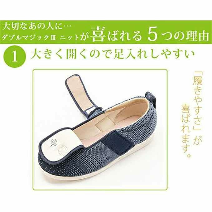 徳武産業 あゆみ ダブルマジック3 ニット 紺LL(24.0cm~24.5cm)【足囲3E 両足】【施設用ケアシューズ 介護シューズ シニアシューズ スリッパ 室内履き ルームシューズ】【宅配便送料無料】(6064341)