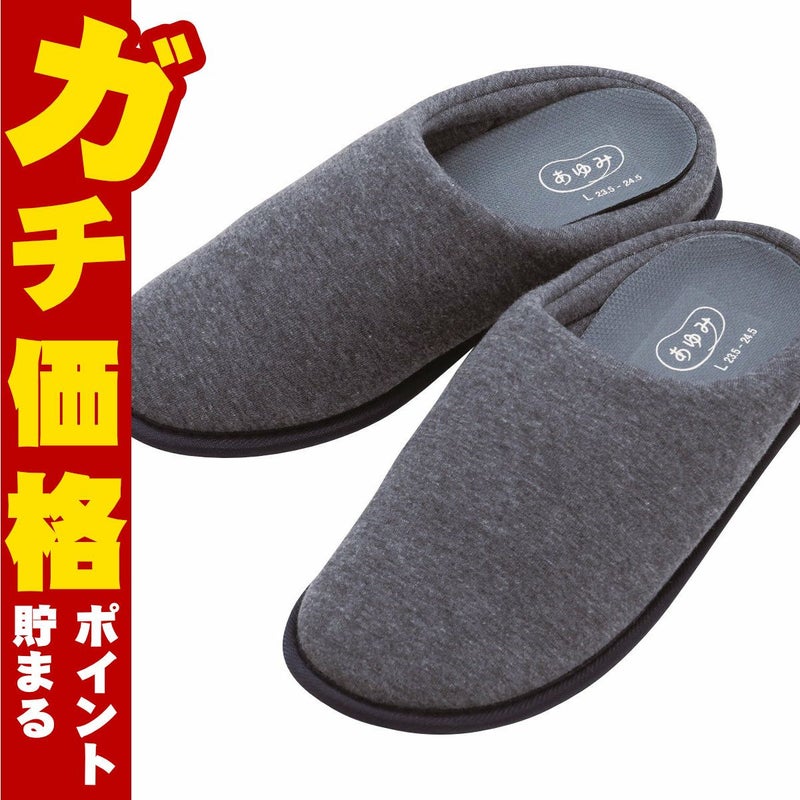 4. 徳武産業 あゆみチャルパー II ダークグレーM【足囲3E 両足】【介護シューズ シニアシューズ スリッパ 室内履き ルームシューズ】【SBT】(6060958)