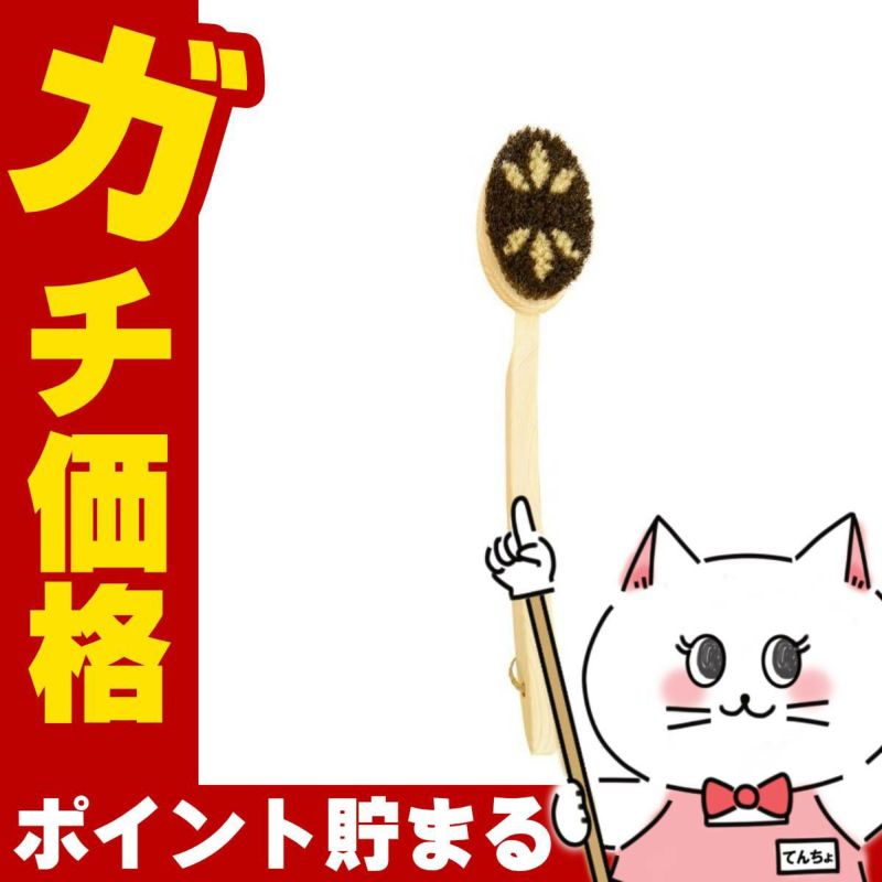 天然素材のボディブラシです。ブラシ部分は、メインに柔らかい洗い心地の馬毛を、白色の部分には豚毛を使用しています。柄は国産ひのきを使用したカーブ形状で、背中を楽に洗えます。柄を取り外せばハンドブラシとしても使用できます。