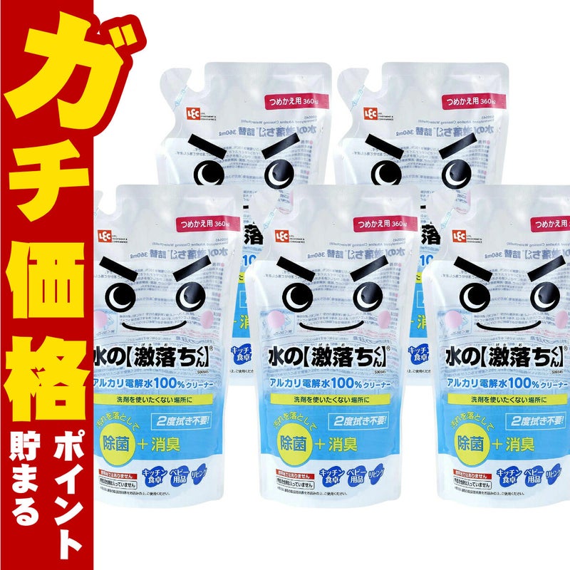 5. 【5個セット】レック 水の【激落ちくん】詰替 360ml×5個 S00545【レフィル 詰め替え】【アルカリ電解水100% お掃除 クリーナー LEC】【SBT】(6041992-set2)