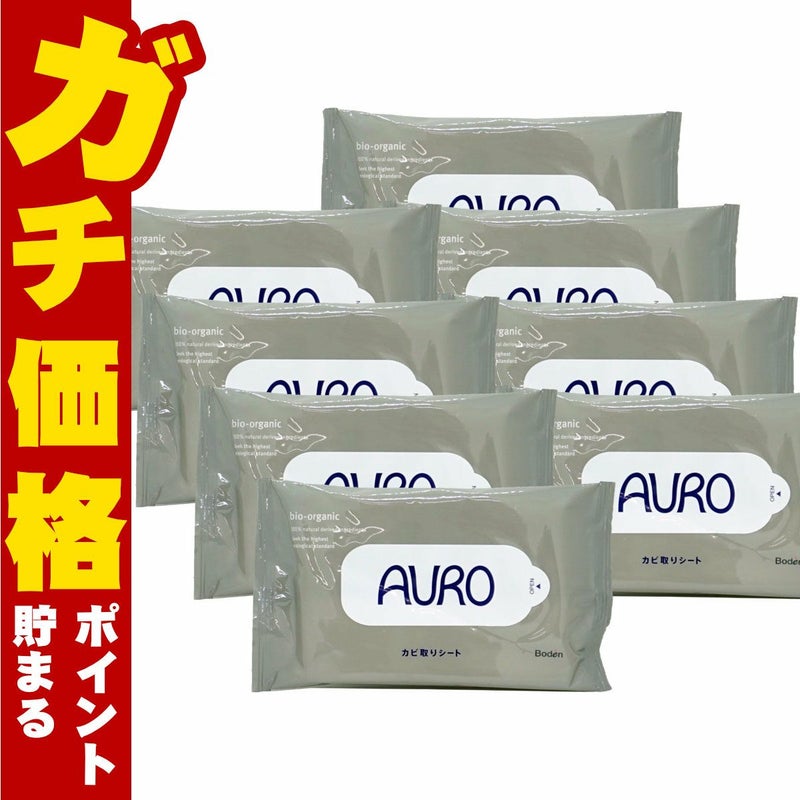 【セット】AURO(アウロ)カビ取りシート 10枚入×8個 (計80枚)【掃除 カビ除去 塩素不使用 天然由来 浴室 押入れ トイレ シンク 床 サッシ 低刺激 ウェットシート カビ菌 サスティナブル】(6049067-set2)【宅配便送料無料】