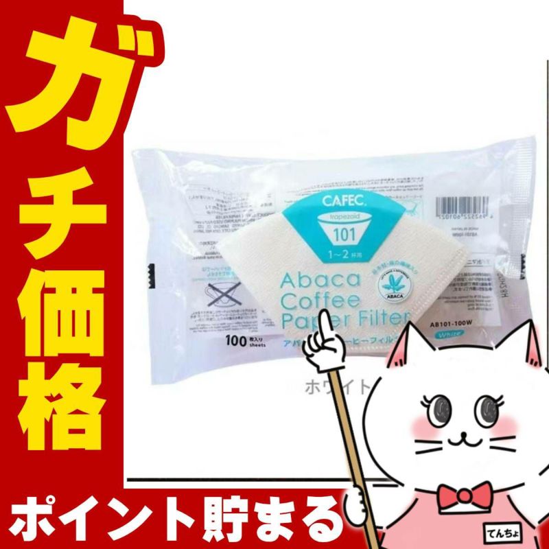 CAFEC AB101-100W アバカ扇形コーヒーフィルター 1~2杯用 100枚入【三洋産業 日本製 台形 白色 ハンドドリップ おうちコーヒー】【SBT】(6062231)