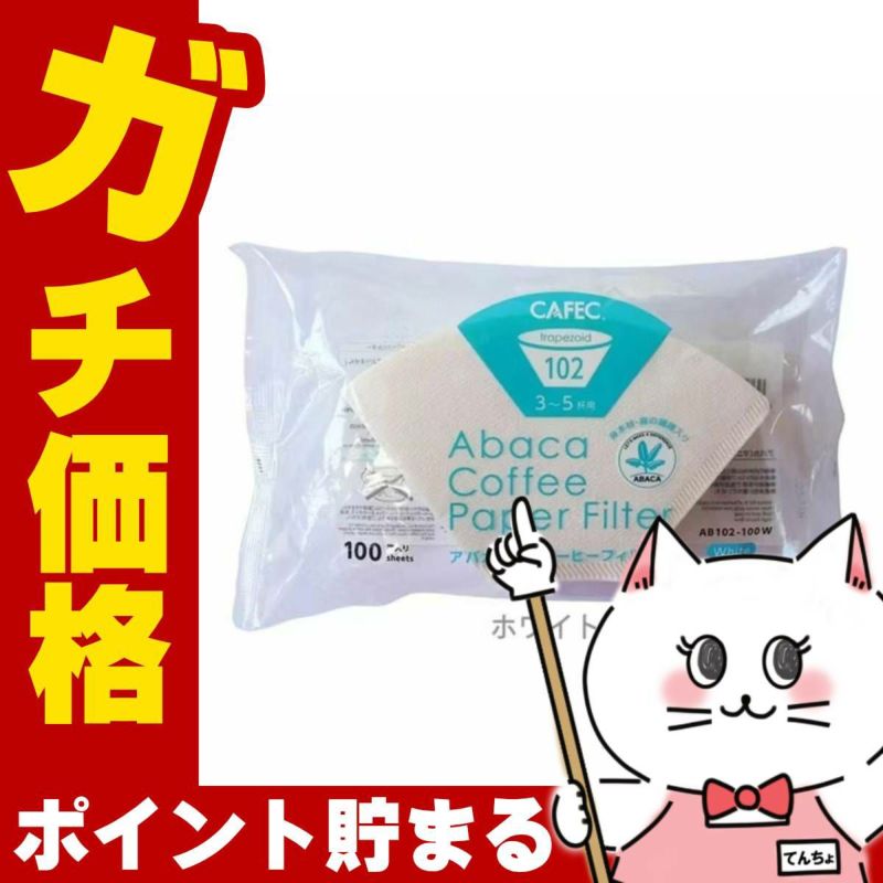 CAFEC AB102-100W アバカ扇形コーヒーフィルター 2~4杯用 100枚入【三洋産業 日本製 台形 白色 ハンドドリップ おうちコーヒー】【SBT】(6062232)