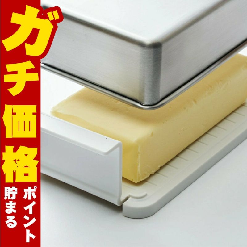 ステンレスと樹脂を組み合わせ、容器の密閉性を高めたバターケース。バターの乾燥を防ぎ、臭いもつきにくく快適に使えます。トレーには切り分けしやすいようにラインが入っています。