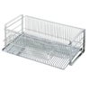 洗練された水切りバスケット。スリム形状でもお皿をたっぷり水切りできます。その秘密はワイヤー線を8mm間隔でつけたこと、同じスペースでもお皿を水切る最小の間隔をあけて立て掛けられます。コップ等の小物も安定させて置くことができます。水が自然に流れるトレーを使用。左右の平板枠は持ちやすく、移動するときもしっかりつかめます。トレーも一緒に持ちあがる構造になっています。箸・スプーンなど水切りできる箸置き付。