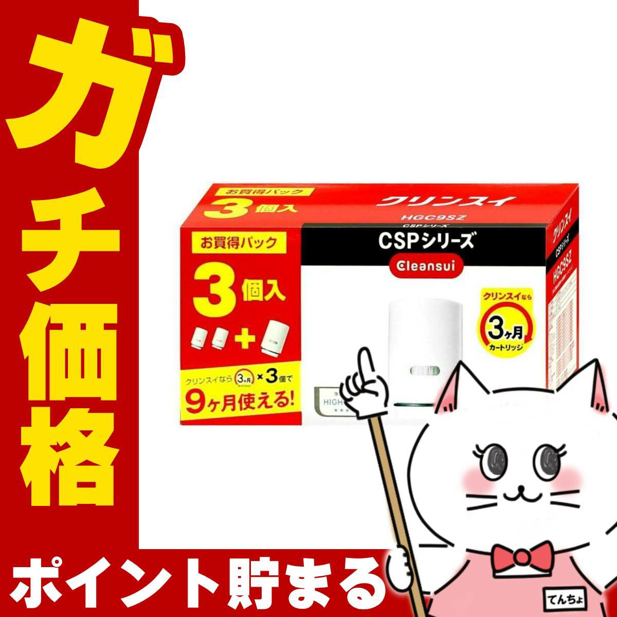 他の画像を見る 【即納】 三菱ケミカル HGC9SZ クリンスイ 蛇口直結型浄水器カートリッジ 3個入り【Cleansui】【交換用カートリッジ CSPシリーズ】【宅配便送料無料】(6057519) 送料無料 ¥ 6,559 税込 詳細を見る お気に入りに登録する 5.00 (4)