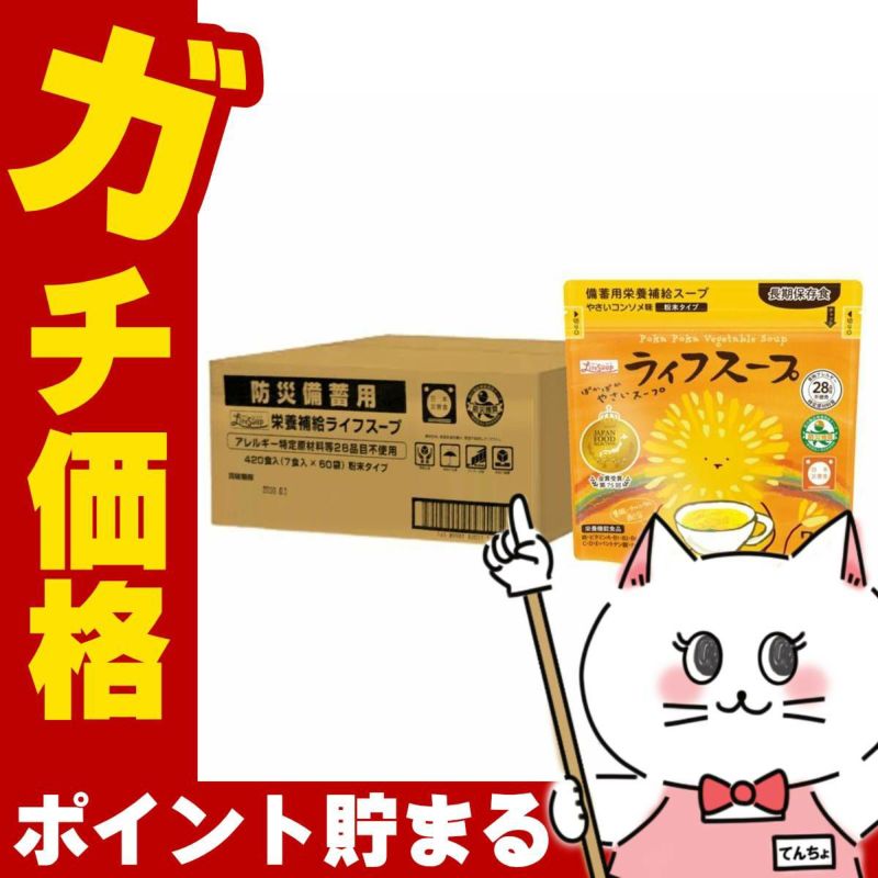 【バファ☆ポン応援プライス!】備蓄用栄養補給 ライフスープ 野菜コンソメ (13.5g×7包×60袋入り) 420食 1ケース【ベジタルアドバンス 栄養機能食品 正規販売店】【代引き不可】※他商品との同梱不可【宅配便送料無料】(6056265-set2)