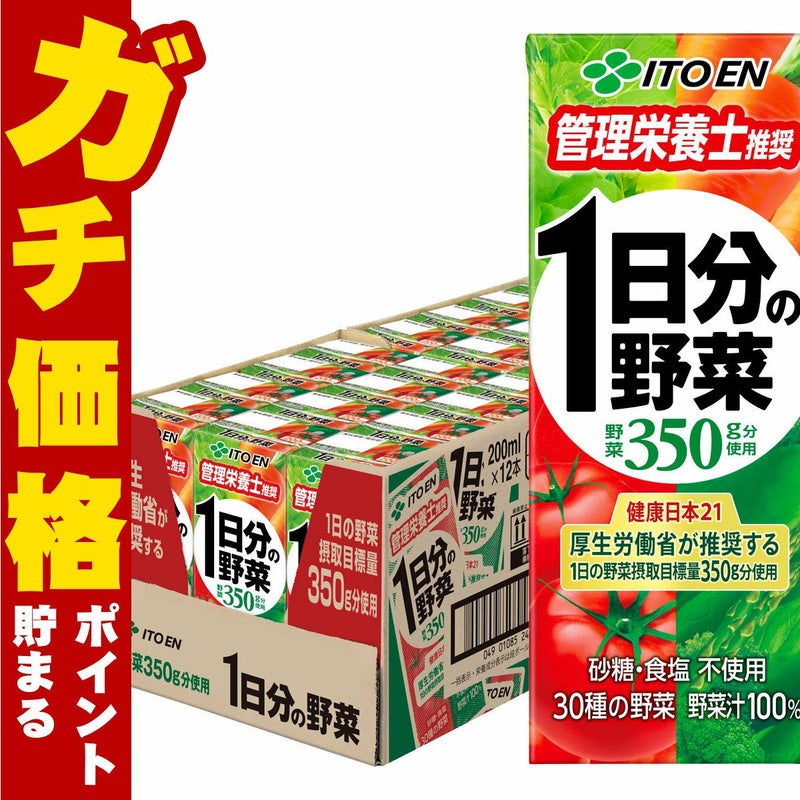 伊藤園 1日分の野菜 200ml紙パック 24本入【代引き不可】【野菜嫌い克服方法 野菜ジュース 一日分の野菜 無塩 無糖 野菜汁 100% 管理栄養士 推奨】【宅配便送料無料】※他商品との同梱不可 (6049118)