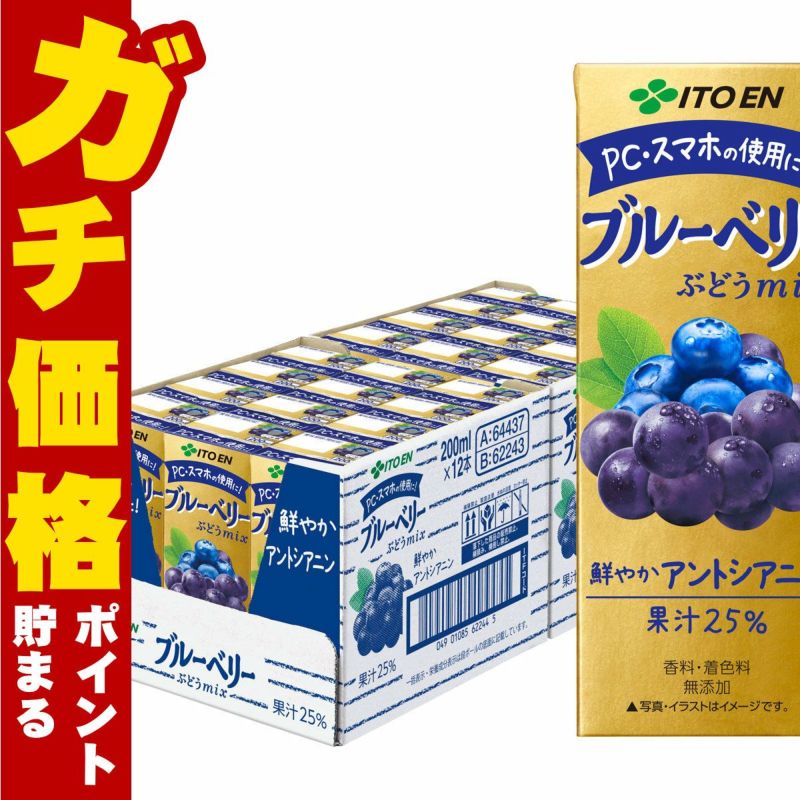 5. 伊藤園 ブルーベリー ぶどうmix 200ml 24本入り 紙パック ぶどうミックス 果汁飲料 アントシアニン【代引き不可】【宅配便送料無料】※他商品との同梱不可 (6050303)