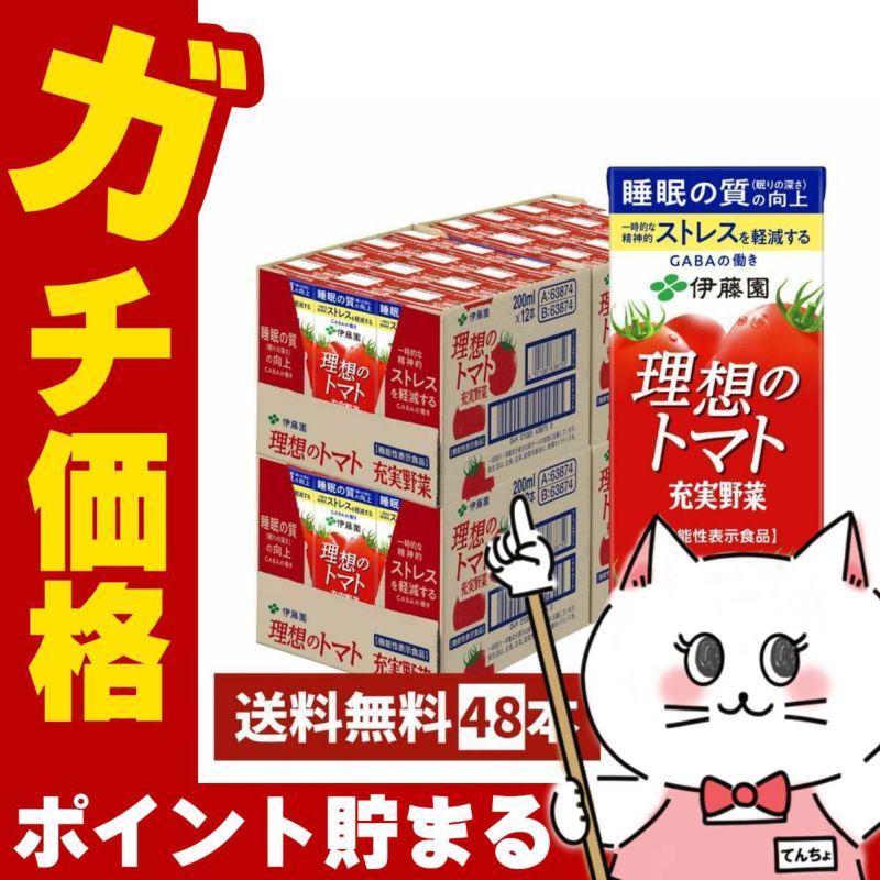 【バファ☆ポン応援プライス!】【セット】伊藤園 理想のトマト 200ml×48本【2ケース 24本×2個】紙パック 機能性表示食品【代引き不可】 ※他商品との同梱不可【宅配便送料無料】 (6052939-set1)