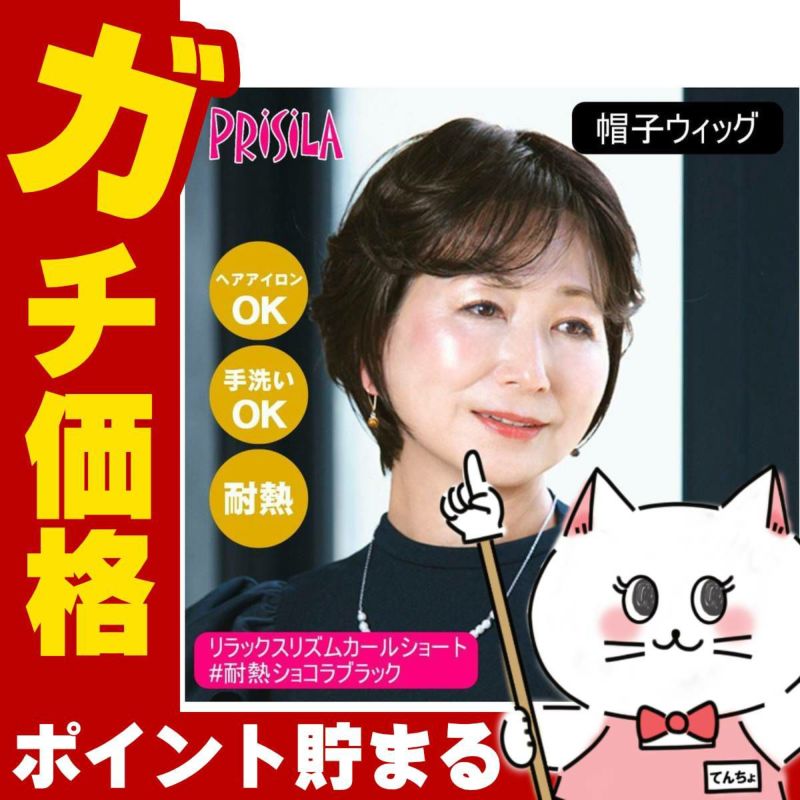 5. プリシラ 帽子ウィッグ リラックスリズムカールショート BO-07-TCK #耐熱ショコラブラック Mサイズ(約54~60cm)【医療用 フルウィッグ かつら 和装 かわいい 可愛い 小顔 簡単 お手軽 初心者向け ボブ 金属不使用 締め付けない】【宅配便送料無料】(6057671)