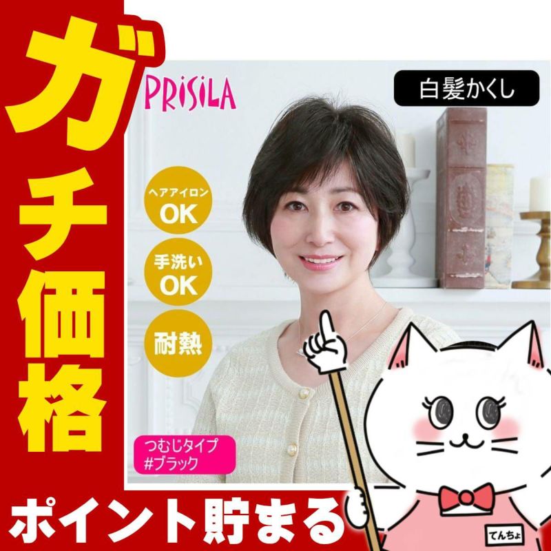 プリシラ 白髪かくし つむじタイプ ST-004-1N #ブラック 【白髪隠し カバー ピンポイント 頭頂部ウィッグ つけ毛 かつら 医療用 和装 コスプレ 自然 簡単】【宅配便送料無料】(6057673)