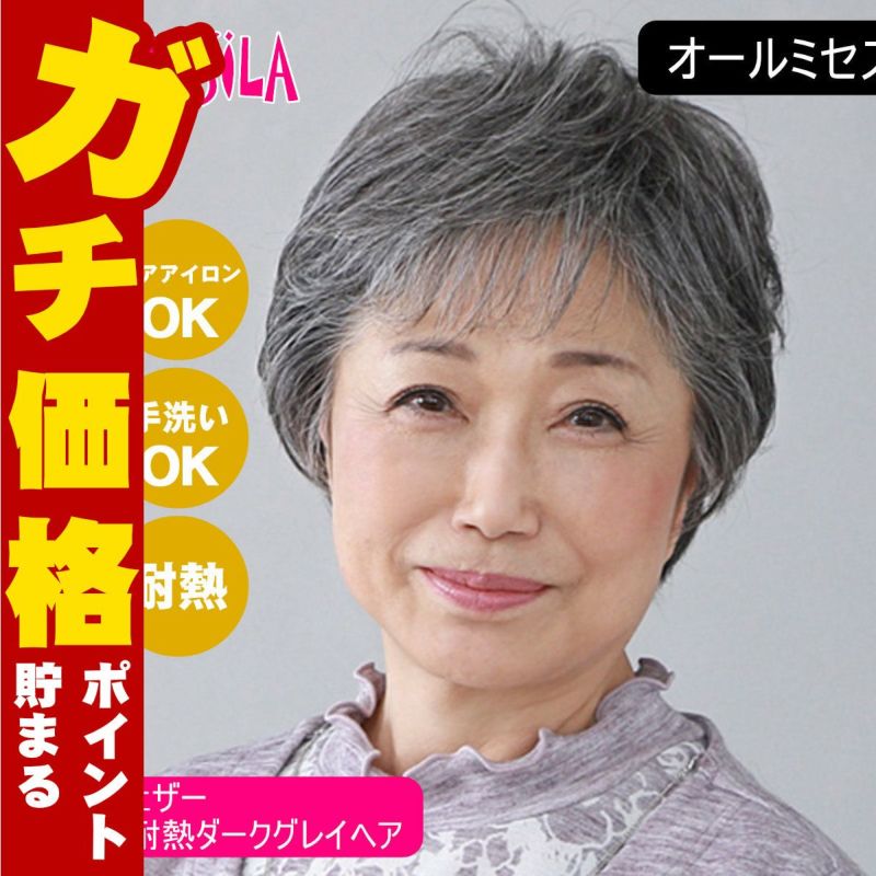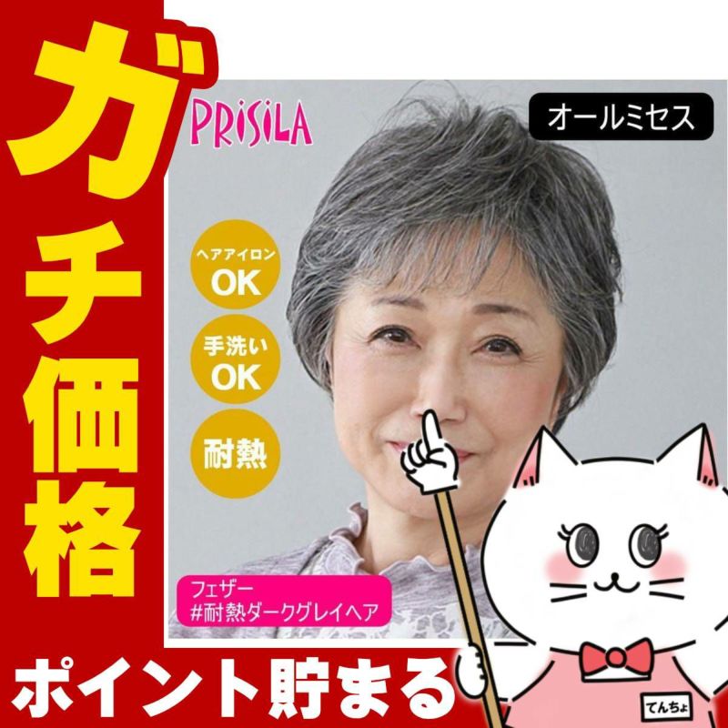 5. プリシラ オールミセスフェザー カールハーフ A-116-TDGH #耐熱ダークグレイヘア 【医療用 フルウィッグ かつら 和装 シニア 白髪隠し 自然 簡単 お手軽 初心者向け 金属不使用 締め付けない】【宅配便送料無料】(6057708)