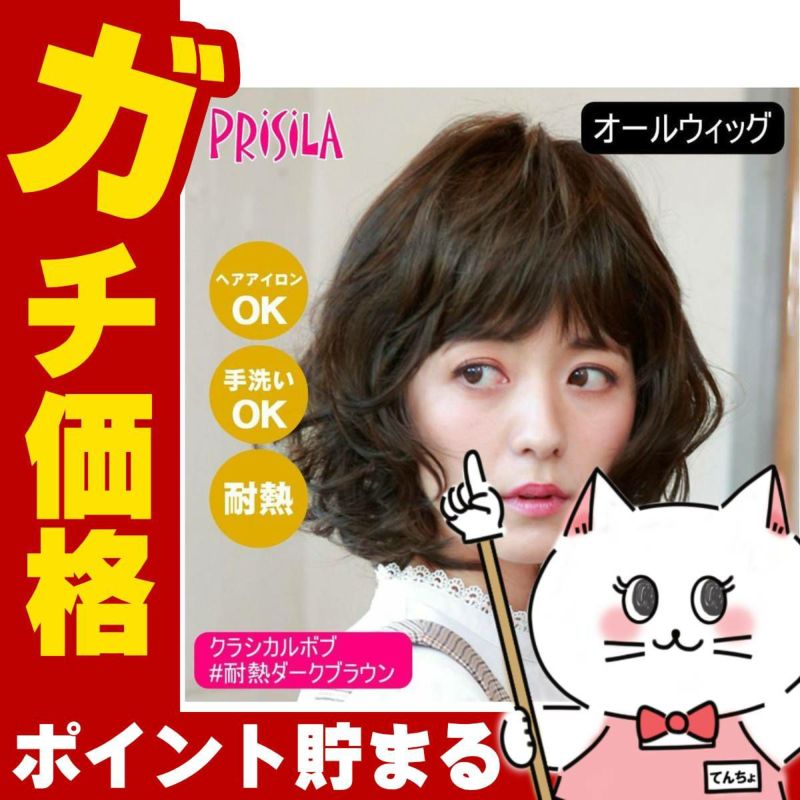 プリシラ オールウィッグ クラシカルボブ A-664-TDB #耐熱ダークブラウン 【かつら 内巻きボブ レトロ 和装 コスプレ 医療用 自然 おしゃれ かわいい 可愛い 小顔 簡単 お手軽 初心者向け 女性 】【宅配便送料無料】(6057734)
