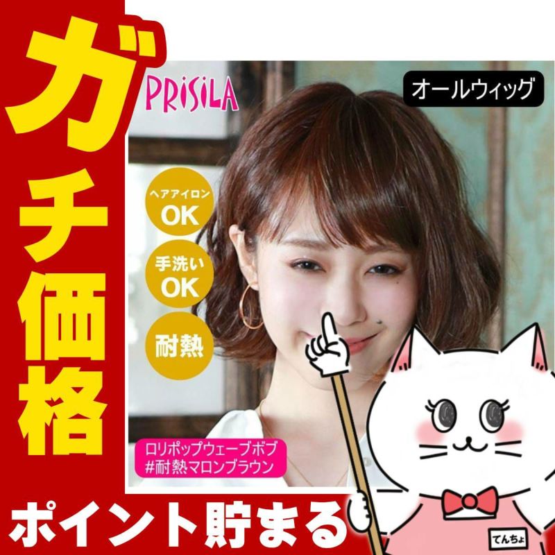 プリシラ オールウィッグ ロリポップウェーブボブ A-705-TMB #耐熱マロンブラウン 【かつら 和装 コスプレ 医療用 自然 ゆるふわ おしゃれ かわいい 可愛い 小顔 簡単 お手軽 初心者向け 女性 】【宅配便送料無料】(6057762)