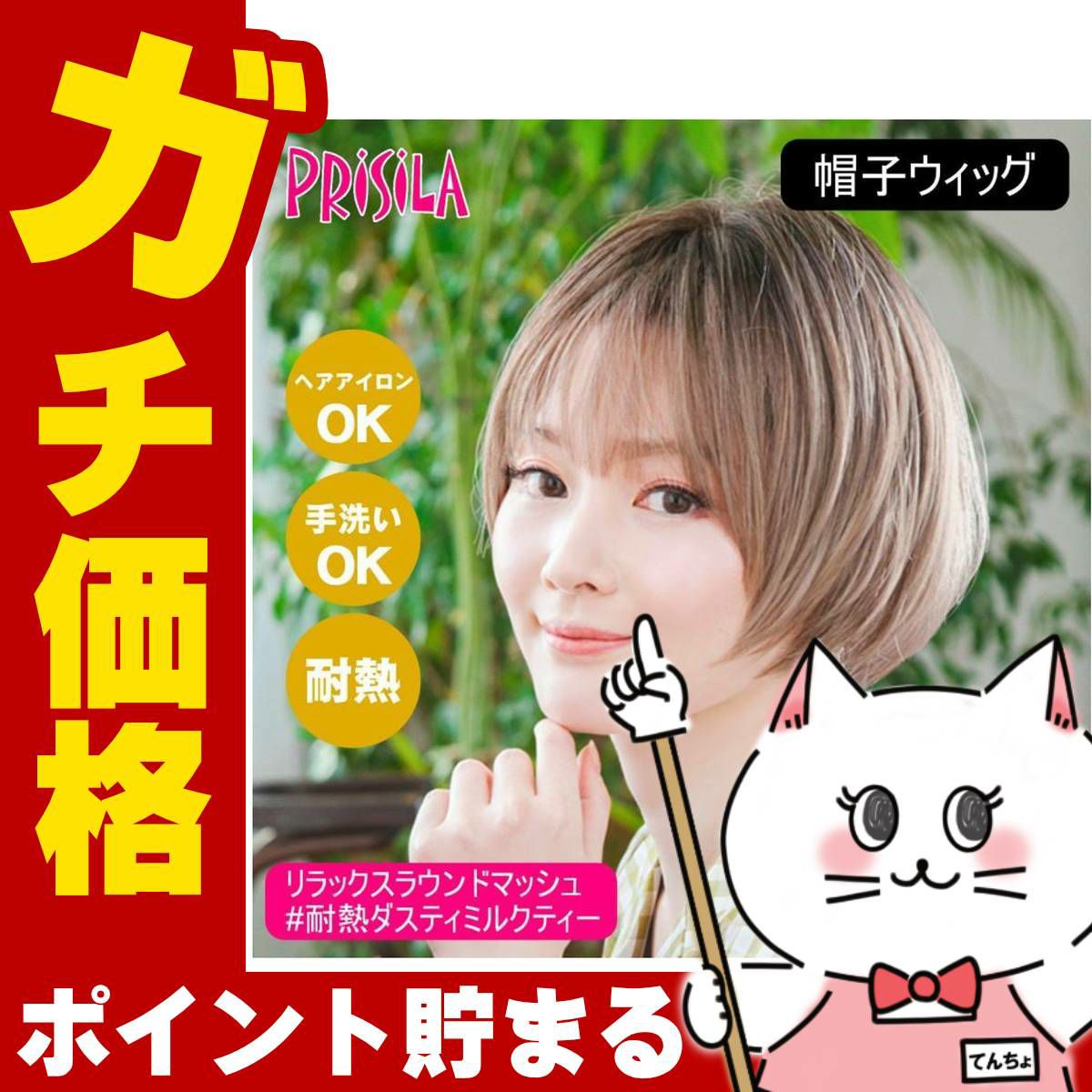 他の画像を見る 【即納】 プリシラ 帽子ウィッグ リラックスベリーショート BO-06-TDMT #耐熱ダスティミルクティー Mサイズ(約54~60cm)【医療用 フルウィッグ かつら 和装 かわいい 可愛い 小顔 簡単 お手軽 初心者向け ボブ 金属不使用 締め付けない】【宅配便送料無料】(6057669) 送料無料 ¥ 5,289 税込 詳細を見る お気に入りに登録する (0)
