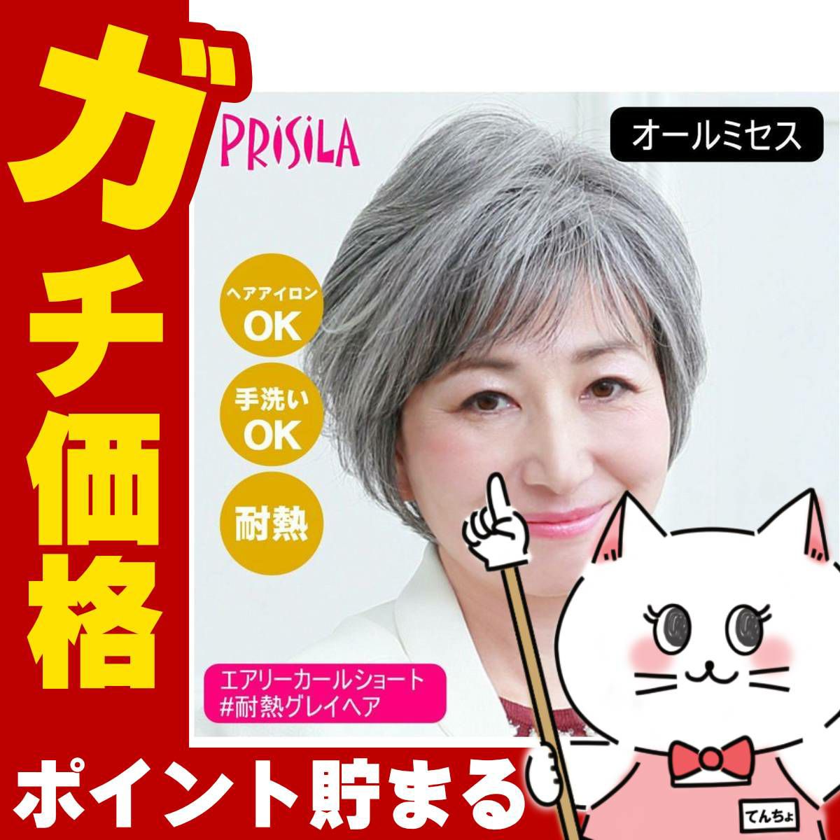他の画像を見る 【即納】 プリシラ オールミセスミニマムショート A-111-TGH #耐熱グレイヘア 【医療用 フルウィッグ つむじ 人工スキン かつら 和装 シニア 白髪隠し 自然 簡単 お手軽 初心者向け 金属不使用 締め付けない】【宅配便送料無料】(6057696) 送料無料 ¥ 6,543 税込 詳細を見る お気に入りに登録する (0)