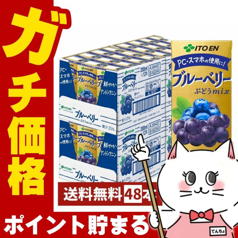 5. 【セット】伊藤園 ブルーベリー ぶどうmix 200ml×48本【2ケース 24本×2個】紙パック ぶどうミックス 果汁飲料 アントシアニン【代引き不可】【宅配便送料無料】 ※他商品との同梱不可 (6050303-set1)