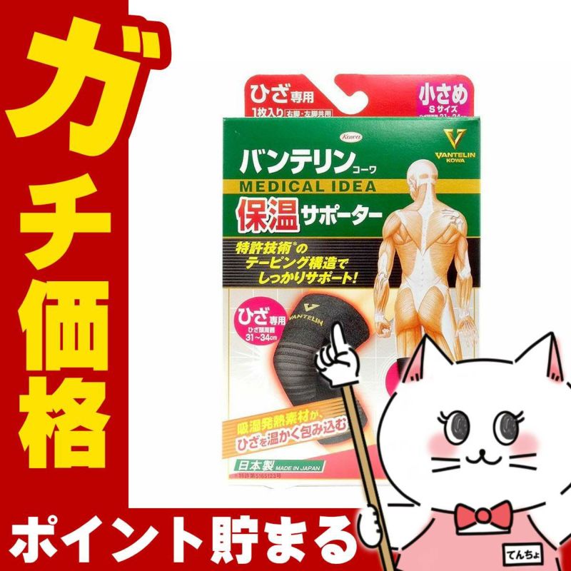 コーワ バンテリン保温サポーターひざ用 ブラックS(小さめ)※ひざ頭周囲31~34cm【膝専用/左右共用1枚入り】【バンテリン膝サポーター/日本製/ Kowa / 興和】【メール便対応商品】【SBT】(6022689)