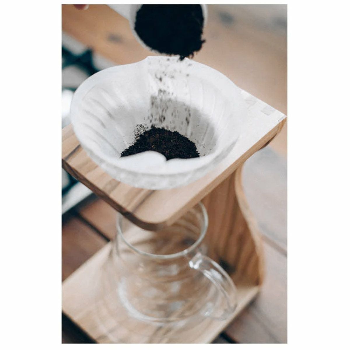 オリーブウッドを使用したドリップスタンドはナチュラルなイメージで、インテリアにも馴染むデザインです。