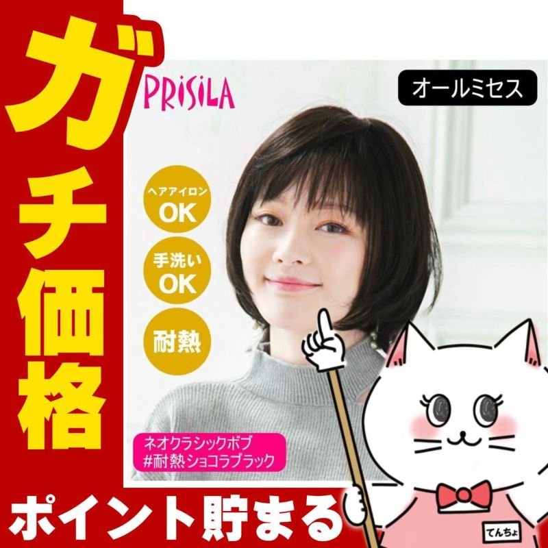 プリシラ オールミセスネオクラシックボブ A-115-TCK #耐熱ショコラブラック 【医療用 フルウィッグ かつら 和装 シニア 白髪隠し 自然 簡単 お手軽 初心者向け 金属不使用 締め付けない】【宅配便送料無料】(6057703)