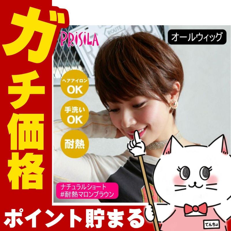 プリシラ オールウィッグ ナチュラルショート A-676-TMB #耐熱マロンブラウン 【かつら 和装 コスプレ 医療用 自然 おしゃれ かわいい 可愛い 小顔 簡単 お手軽 初心者向け 女性 】【宅配便送料無料】(6057738)