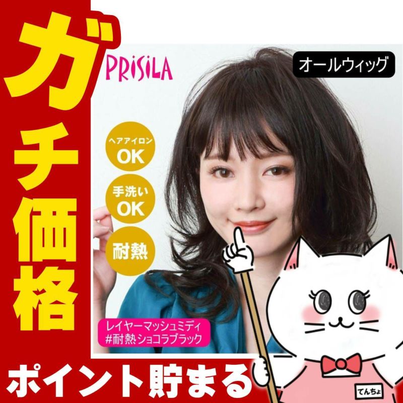 プリシラ オールウィッグ レイヤーマッシュミディ A-699-TCK #耐熱ショコラブラック 【かつら 和装 コスプレ 医療用 自然 ごくゆるウェーブ バレない ミディアム おしゃれ かわいい 可愛い 小顔 簡単 お手軽 初心者向け 女性 】【宅配便送料無料】(6057755)