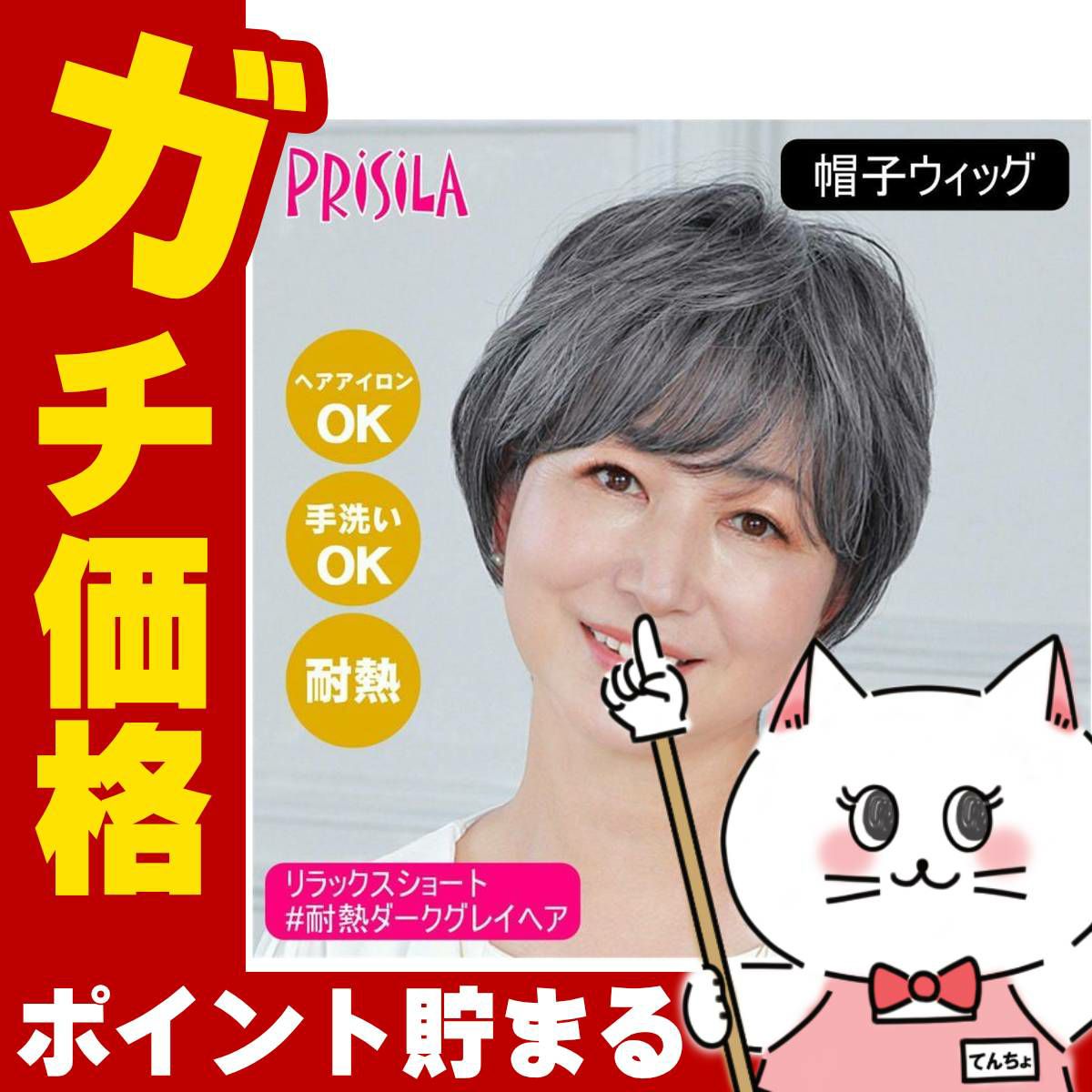 他の画像を見る 【即納】 プリシラ 帽子ウィッグ リラックスショート BO-01-TGH #耐熱グレイヘア Mサイズ(約54~60cm)【医療用 フルウィッグ かつら 和装 かわいい 可愛い 小顔 簡単 お手軽 初心者向け 女性 ボブ 】【宅配便送料無料】(6057658) 送料無料 ¥ 5,771 税込 詳細を見る お気に入りに登録する (0)