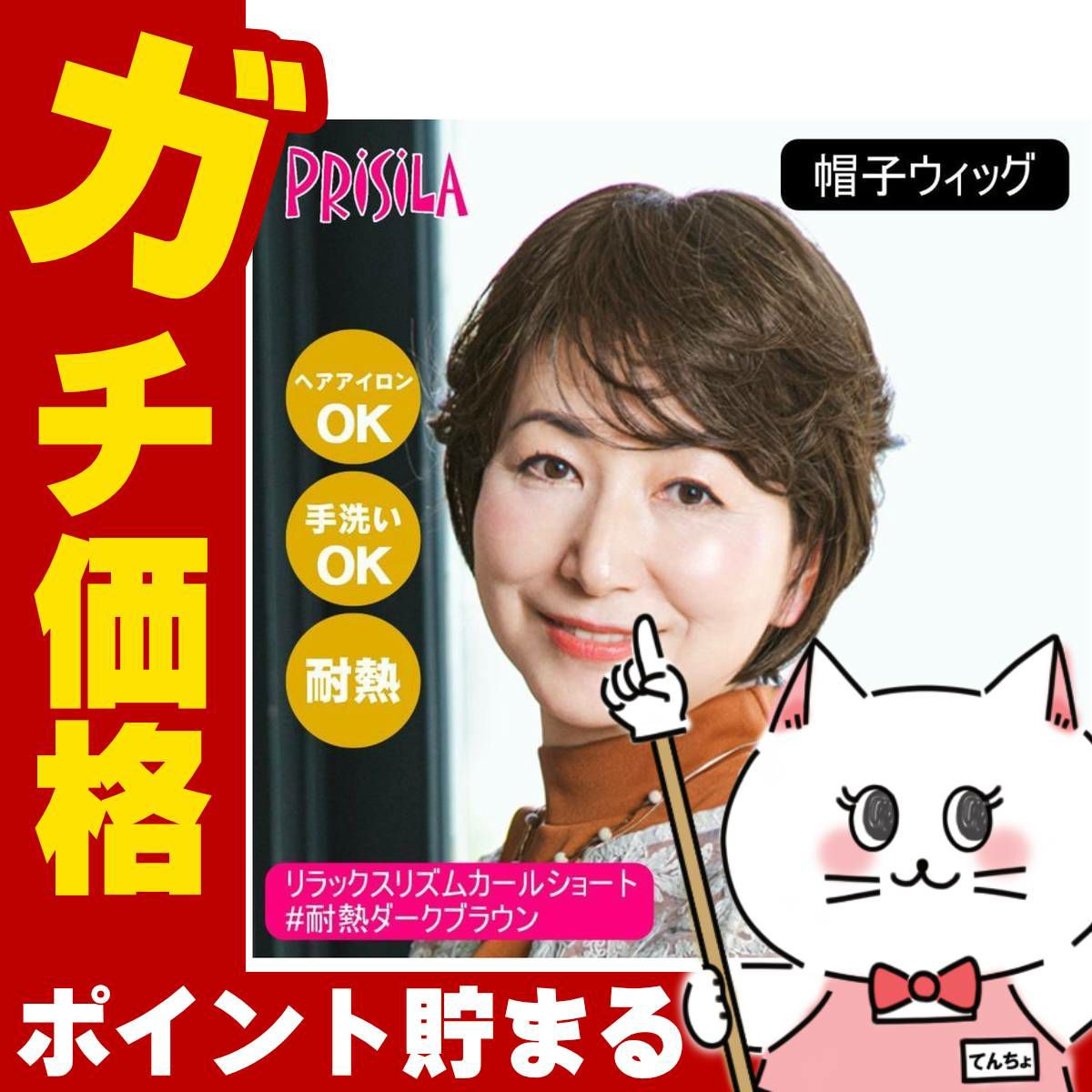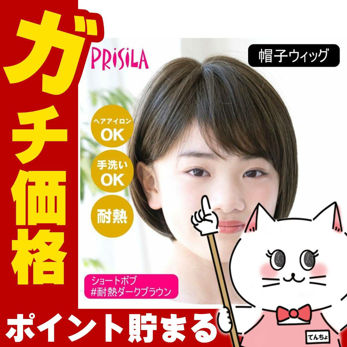 他の画像を見る 【即納】 プリシラ 帽子ウィッグフィット ボブ BO-10-TCK #耐熱ショコラブラック Sサイズ(約52~56ccm)【医療用 フルウィッグ かつら 和装 コスプレ 自然 おしゃれ かわいい 可愛い 小顔 簡単 お手軽 初心者向け ボブ 金属不使用 締め付けない】【宅配便送料無料】(6057722) 送料無料 ¥ 5,578 税込 詳細を見る お気に入りに登録する (0)