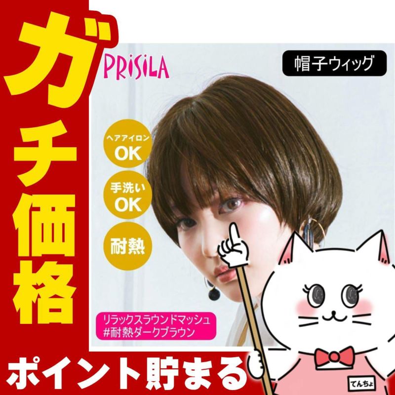 プリシラ 帽子ウィッグ リラックスラウンドマッシュ BO-05-TDB #耐熱ダークブラウン Mサイズ(約54~60cm)【医療用 フルウィッグ かつら 和装 かわいい 可愛い 小顔 簡単 お手軽 初心者向け 女性 ボブ 金属不使用 締め付けない】【宅配便送料無料】(6057665)