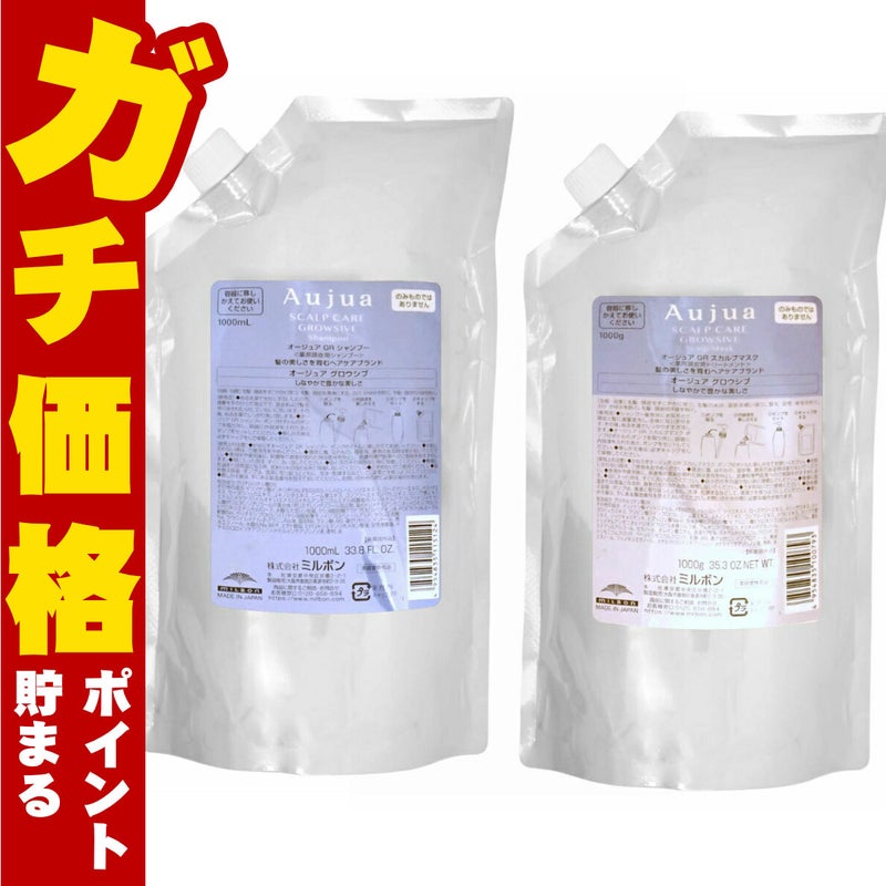 5. 【セット】ミルボン オージュア グロウシブ シャンプー 詰替 1000ml+マスク 詰替 1000g【レフィル/詰め替え】【医薬部外品】【Aujua】【宅配便送料無料】(6066805-set1)