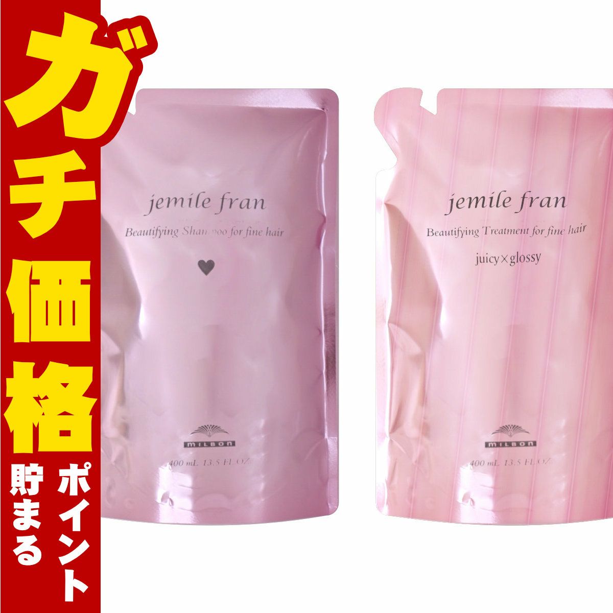 【セット】ミルボン ジェミールフラン シャンプーハート 詰替 400ml+ジェミールフラン ジューシーグロッシー 詰替 400g【レフィル/詰め替え】【ヘアシャンプー ヘアトリートメント】【宅配便送料無料】(6019583-set2)