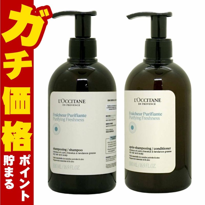 【セット】ロクシタン ピュアフレッシュ シャンプー 500ml +コンディショナー 500ml 【本体 ポンプ】【ボトルセット】L'OCCITANE【宅配便送料無料】(6062180-set1)