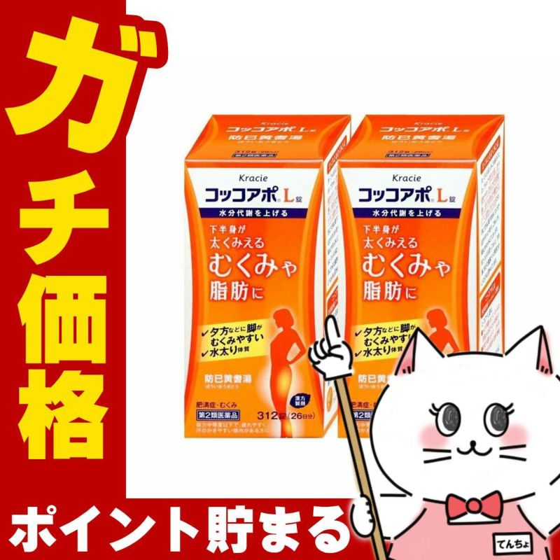 【第2類医薬品】【セット】コッコアポL錠 312錠×2個【クラシエ薬品株式会社】【たるみ脂肪/運動不足/ダイエット/防已黄耆湯】【宅配便送料無料】 (6042955-set1)