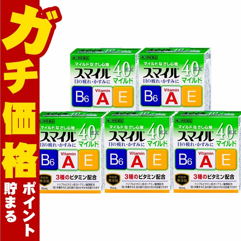 【第2類医薬品】【セット】スマイル40EXマイルド 15ml×5個【ライオン株式会社】【目薬/目の疲れ/目のかすみ/充血/かゆみ】【メール便対応商品】【SBT】 (6043228-set4)