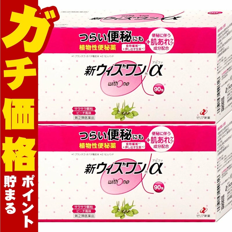 【指定第2類医薬品】【セット】ウィズワンα 90包×2個【ゼリア新薬】【植物性便秘薬/ピーチ風味/サンキライエキス配合】【宅配便送料無料】 (6043428-set1)