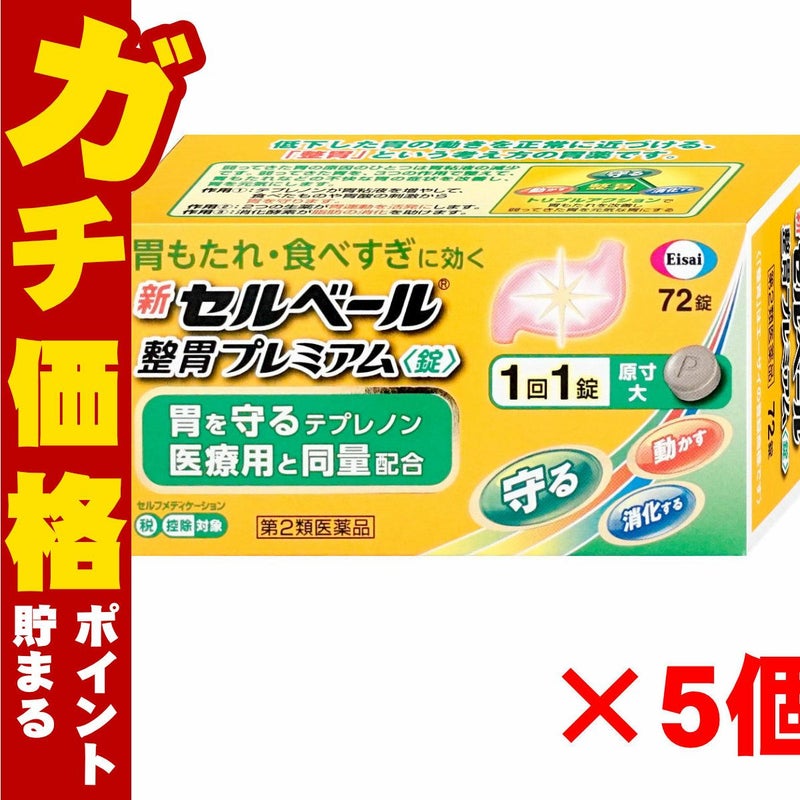 【第2類医薬品】【セット】新セルベール整胃プレミアム錠 72錠×5個(セルフメディケーション税制対象)【エーザイ】【胃腸薬】【宅配便送料無料】(6049072-set3)