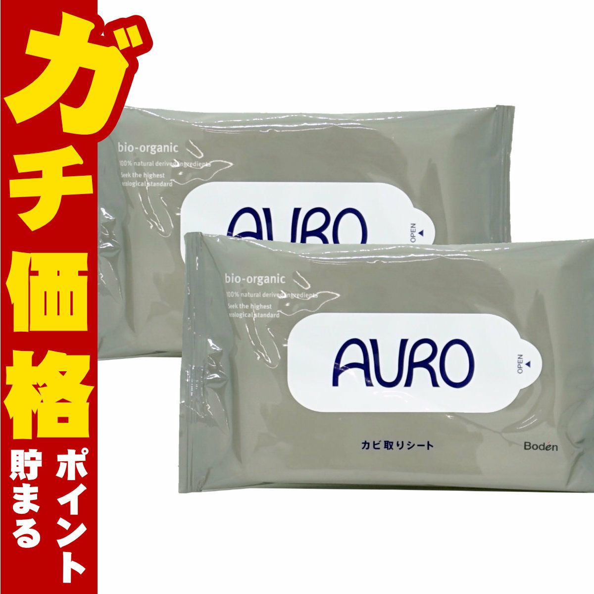 【セット】AURO(アウロ)カビ取りシート 10枚入×2個 (計20枚)【掃除 カビ除去 塩素不使用 天然由来 浴室 押入れ トイレ シンク 床 サッシ 低刺激 ウェットシート カビ菌 サスティナブル】【メール便対応商品】【SBT】(6049067-set1)