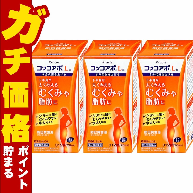 【第2類医薬品】【セット】コッコアポL錠 312錠×3個【クラシエ薬品株式会社】【たるみ脂肪/運動不足/ダイエット/防已黄耆湯】【宅配便送料無料】 (6042955-set2)