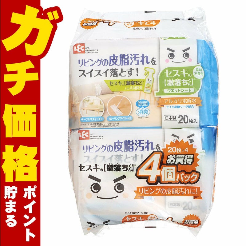 5. レック セスキの激落ちシートフローリング用4P SS-292【フローリング用ウェットシート/アルカリ電解水/セスキ炭酸ソーダ/お掃除/激落ちくん/LEC】【SBT】 (6041988)