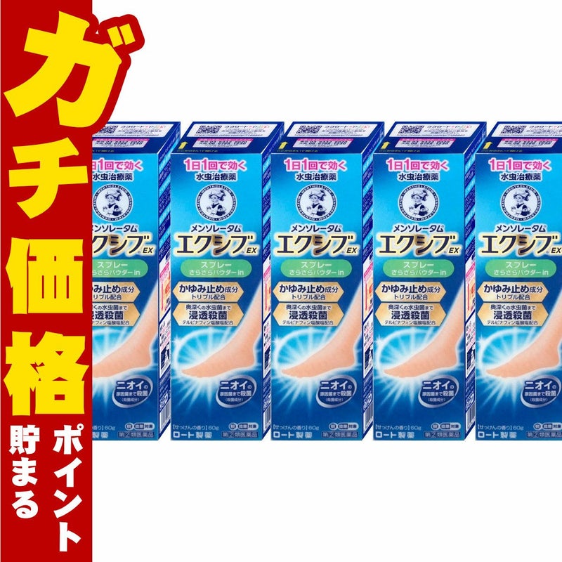 【指定第2類医薬品】【セット】メンソレータム エクシブEXスプレー 60g×5個【セルフメディケーション税制対象】【水虫薬】【ロート製薬】(6048070-set3)【宅配便送料無料】