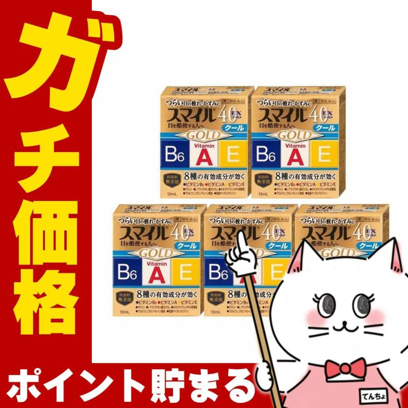 【第2類医薬品】【セット】スマイル40EXゴールドクール 13ml×5個【ライオン株式会社】【目薬/目の疲れ/目のかすみ】【メール便対応商品】【SBT】 (6043163-set3)